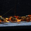 Hornet to niezwykle efektowna odmiana krewetki z rodzaju Caridina, która wyróżnia się kontrastowym ubarwieniem przypominającym kolory szerszenia. Intensywne pomarańczowo-żółte pasy połączone z głęboką czernią tworzą wyjątkowy wzór, dzięki któremu krewetki Hornet są jedną z najbardziej charakterystycznych odmian w akwariach krewetkowych.